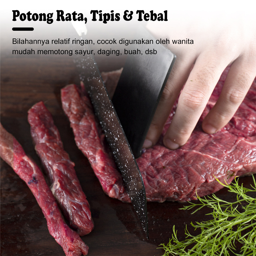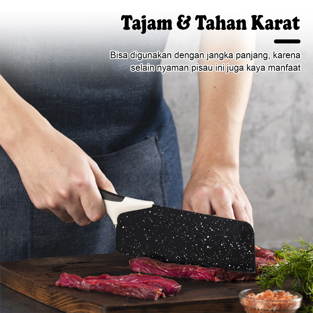 Keunggulan : - Bahan anti karat - Bahan tajam - Terbuat dari campuran batu maifan - Pegangan pisau anti slip/ anti licin