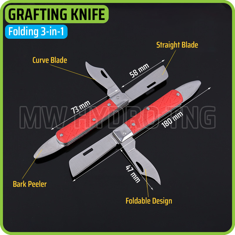 Pisau Lipat Okulasi Cangkok Tanaman, Folding Grafting Knife 3-in-1