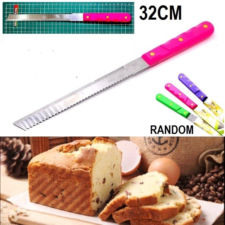 Perlengkapan Rumah > Peralatan Dapur > Perlengkapan Dapur Lainnya > Pisau Roti Kue Tart Ulang Tahun Gagang Warna 2 sisi Bread Knife Stainless Steel 689