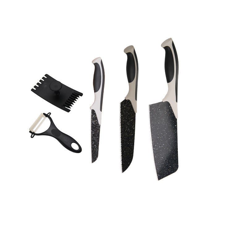 Pisau Set 5 In 1 Hitam Batu Maifan Super Tajam Higienis Serbaguna Knife Set Pisau Dapur Pisau Daging Pisau Buah Pisau Sayur Murah Terjangkau