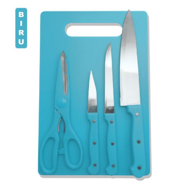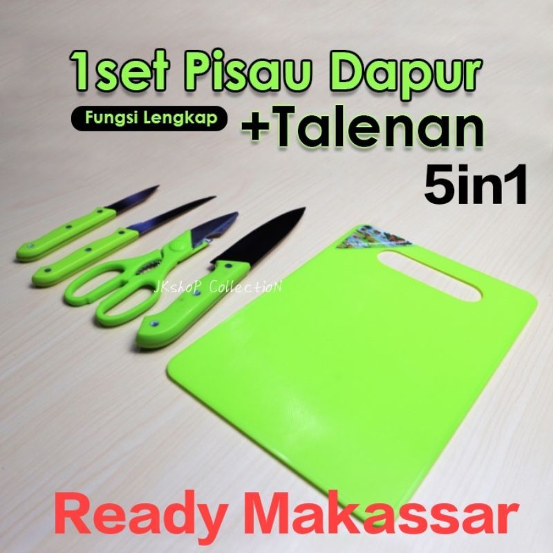 1 Set Talenan Berisi : - 1 pcs Pisau Ukuran Besar - 1 pcs Pisau Ukuran Sedang - 1 pcs Pisau Ukuran Kecil - 1 pcs Gunting Dapur - 1 pcs Talenan