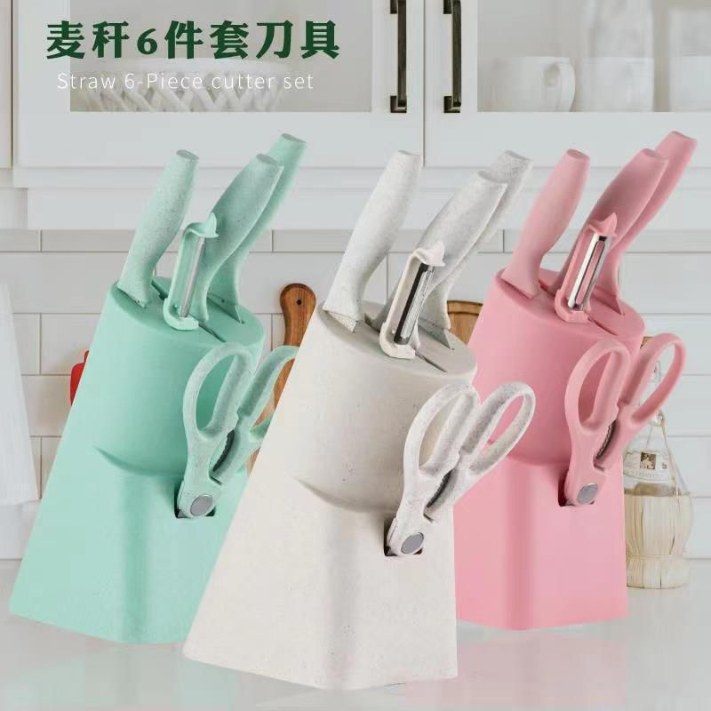 PISAU SET 6IN1 JERAMI GANDUM / KITCHEN KNIFE SET 6 IN 1 DENGAN WADAH