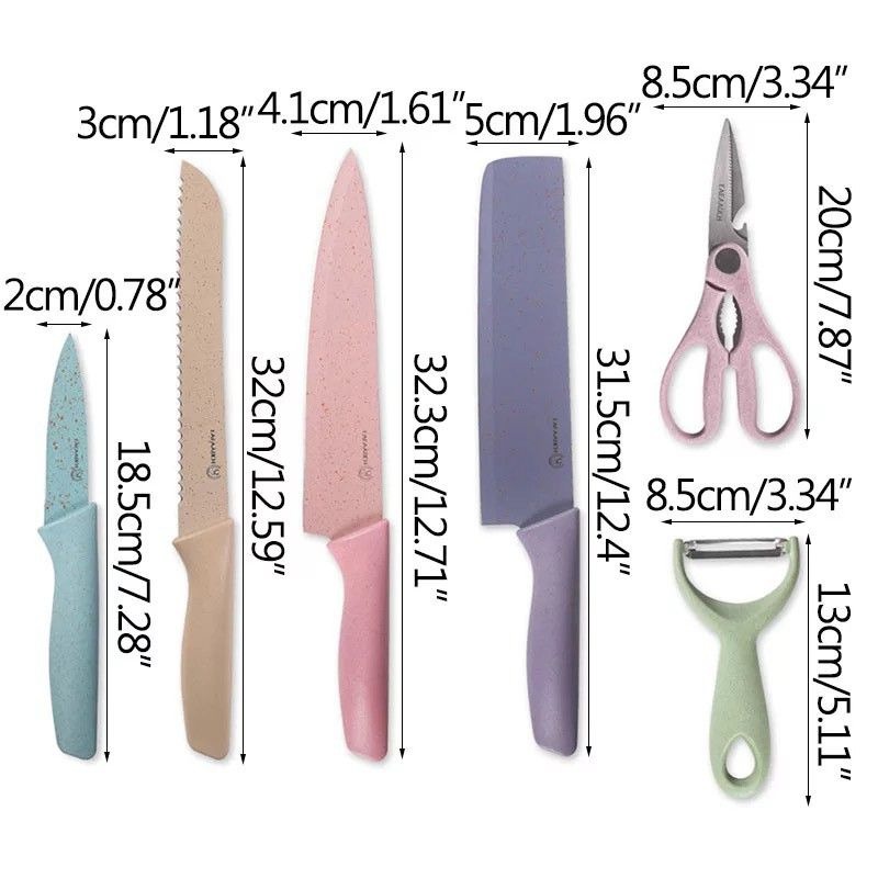 Spesifikasi : - 6 Pcs Pisau Set - Pisau di lapisi anti lengket - Sangat tajam - Dilengkapi peeler - Kualitas Stainless anti karat - Desain Elegan