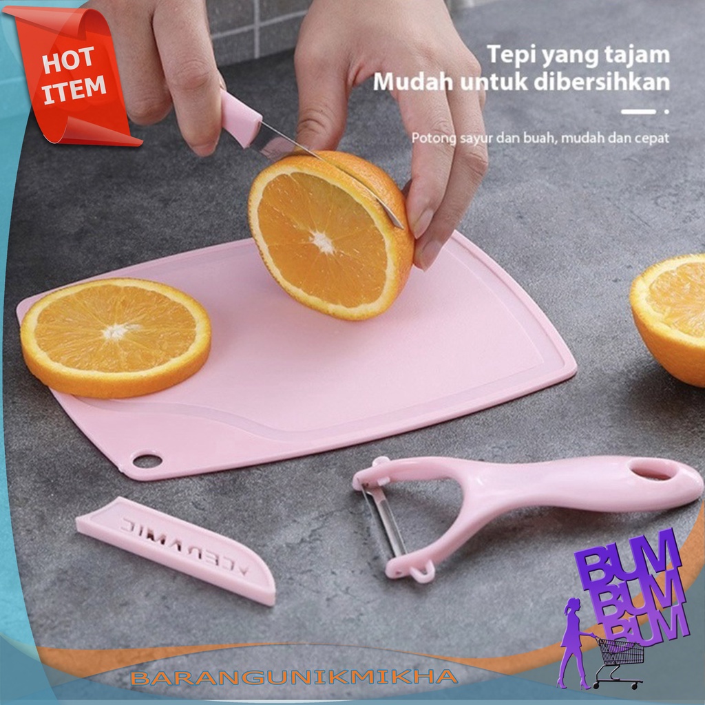 Detail Pisau Set ⭐CERAMIC 3in1 Potong Buah Sayur Talenan Motong Knife Kecil Dapur - BUM