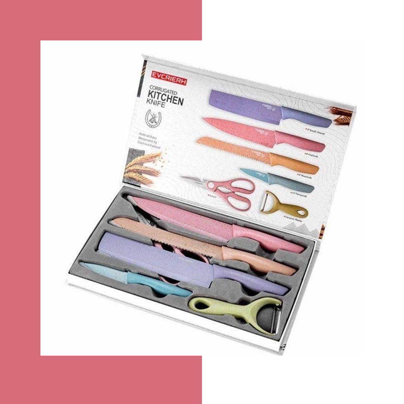 EVCRIVERH Pisau Set Stainless dilapis anti lengket 1 Set isi 6 Warna