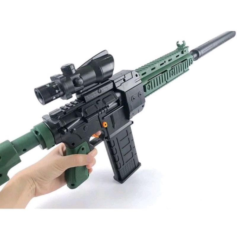 Peluru dari busa Cara Baru Main Tembak Tembakan yang aman untuk anak. Tembakan menggunakan baterai. tidak perlu dikokang. peluru meluncur dengan menekan pelatuk. Ada magazinenya yang bisa diisi dengan sampai dengan 10 peluru.