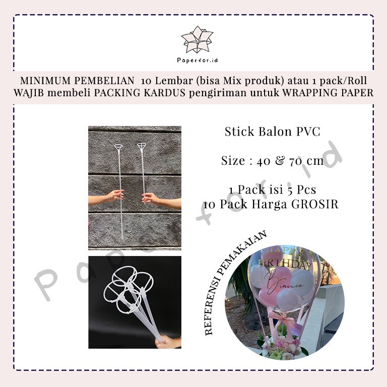 1. PITA BALON ROLL 450M Tersedia dalam 5 warna : Red - Blue - Silver - Gold - Black 2. TIRAI FOIL BACKGROUND 2M X 1M Tersedia dalam 5 warna : Red - Rosegold - Blue -Gold - Silver 3. STICK BALON 40CM DAN 70CM ISI 5PCS (TERMASUK COP BALON) Bisa dipakai untuk balon foil maupun latex. cocok digunakan untuk membuat buket balon. Tersedia dalam 2 ukuran : 40cm dan 70cm 5. POMPA BALON MANUAL Disarankan untuk memompa balon menggunakan alat ini, penggunaan mudah, harga terjangkau (warna dikirim random)