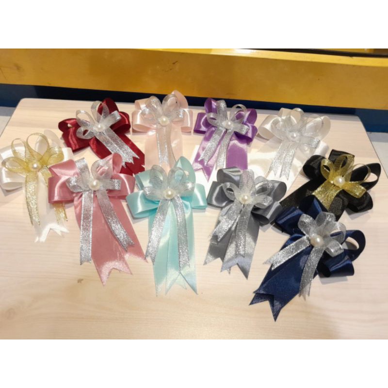 *Harga tertera untuk 1 pc *Barang original bahan satin *jika serius order lebih dari stok segera chat admin *Ukuran pita 2.5 cm dan pita tumpul nya 1 cm Ukuran setelah jadi *minimal pembelian 5pcs ya kak