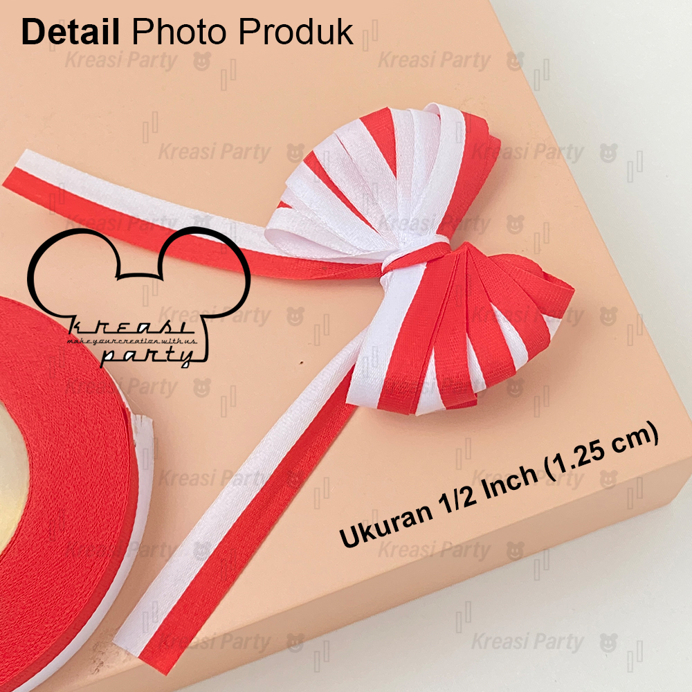 Detail Pita Satin Merah Putih 1/2 inch / Pita Merah Putih / Pita Kain