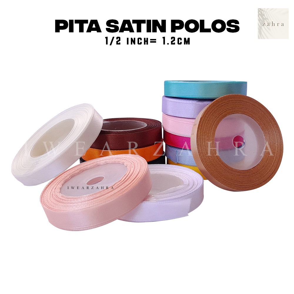 PITA SATIN POLOS 1/2 INCH - Ribbon Gift Bouquet Hiasan Buket Bunga Packing Packaging Hampers Hantaran Souvenir Sovenir Hadiah Kado Giftbox Roll Dekorasi Kerajinan Tangan Perlengkapan Sulam