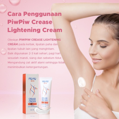 CARA PAKAI: Oleskan PIW PIW Crease Lightning Cream pada ketiak atau area lipatan seperti selangkangan dengan merata. Pakai secara rutin untuk mendapatkan hasil yang optimal.