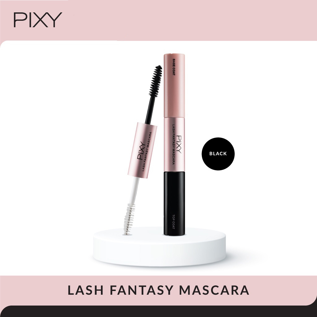 * Pixy Lash Fantasy Mascara 12 ml * Mascara top coat dengan base coat terpisah. * Elastic fiber dalam base coat memisahkan tiap helai bulu mata dan membuatnya tampak lebih tebal, panjang dan lentik. * Warna hitam pekat dari top coat memberi hasil akhir yang fantastis.