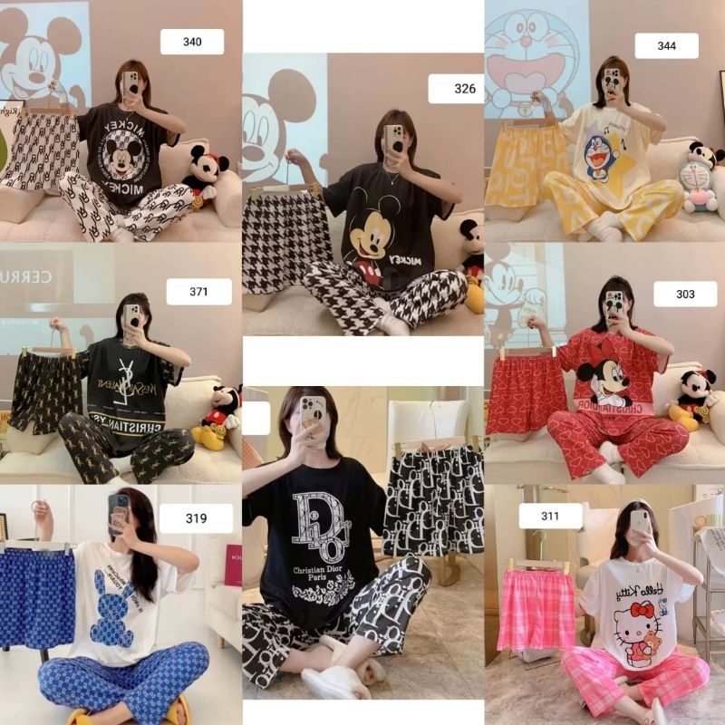 Piyama 3 in 1 dewasa import | baju tidur import lengan pendek | baju tidur 3 in 1