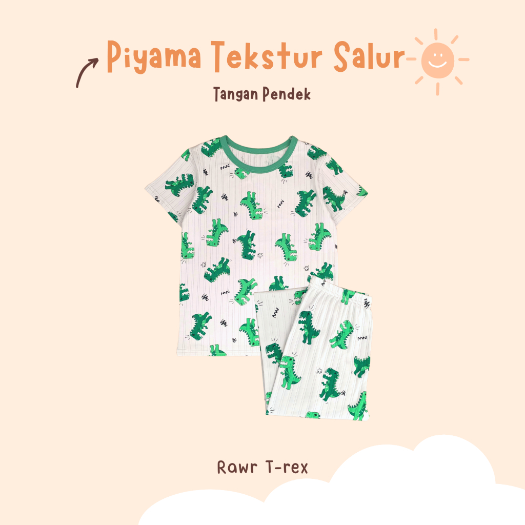 PIYAMA ANAK TEKSTUR SALUR TGN PENDEK BY YOBEBEE ( Pajamas Anak Bahan Lembut )