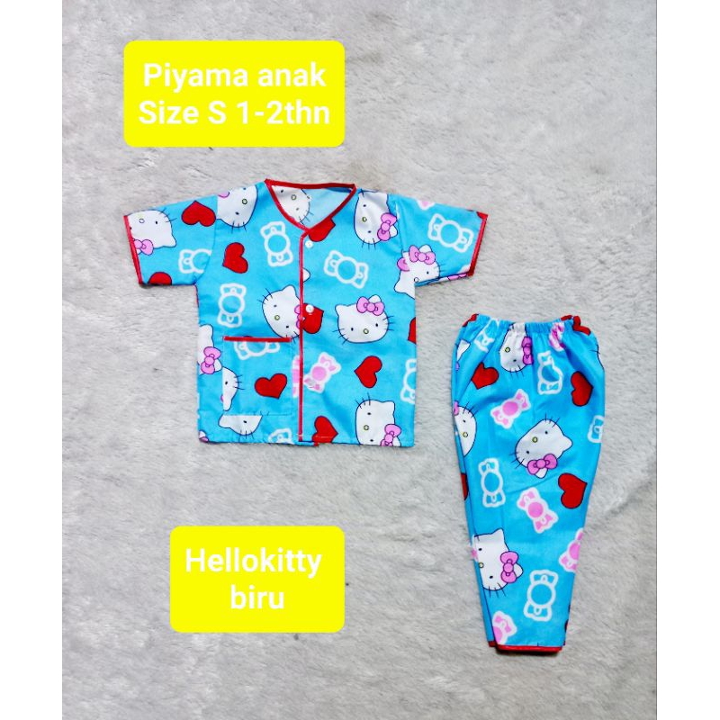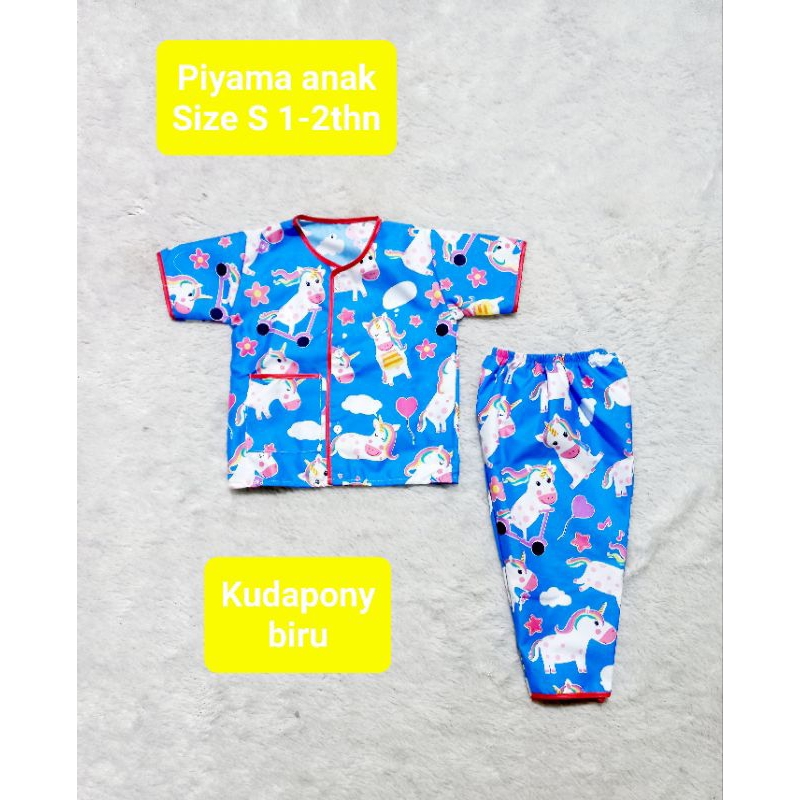 piyama anak. Size S estimasi usia 1 sampai 2 tahun. Lingkar dada (LD) +-60cm. Panjang badan (PB) +-36cm. Panjang celana (PC) +-42cm. Lingkar pinggang melar +- 56cm.