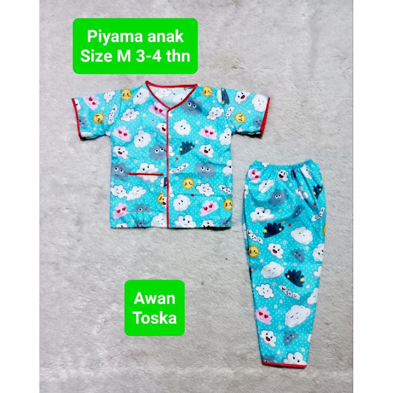 Detail Piyama anak size M 3-4thn. #motif karakter. #COD. Bebas pilih motif. Grosir dan ecer. baju anak.