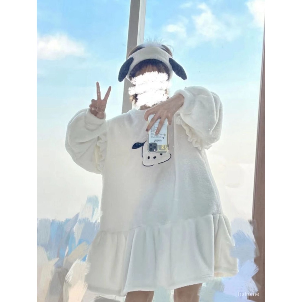 Detail Piyama flanel wanita musim gugur dan musim dingin yang lucu Jepang bordir pachyderm beludru karang m