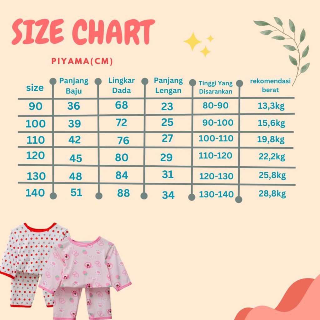 π Ukuran yang tersedia β 90 β 100 β 110 β 120 β 130 β 140 #Silahkan melihat size chart pada slide foto berikutnya π