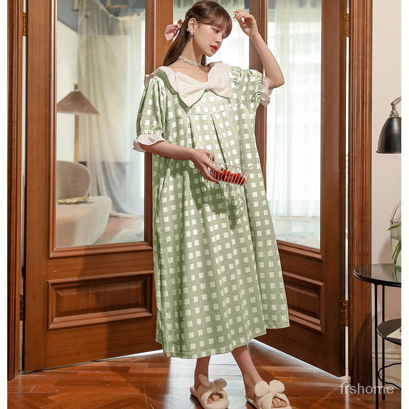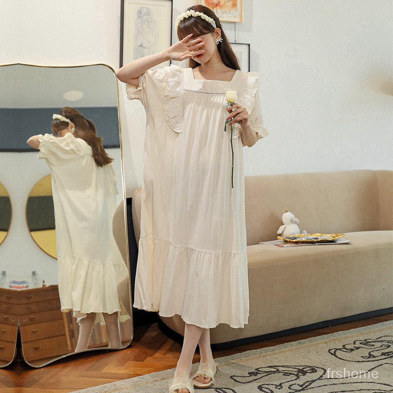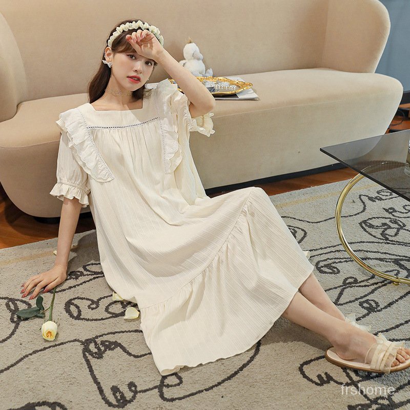 Detail piyama korea Gaun tidur gaya katun baru piyama manis gaya istana putri gaun tidur lengan pendek