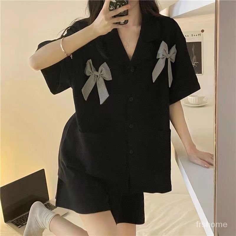 Detail Piyama Lengan Pendek Dasi Kupu-Kupu Dasi Kupu-Kupu Pendek Pakaian Pendek Set Dua Bagian