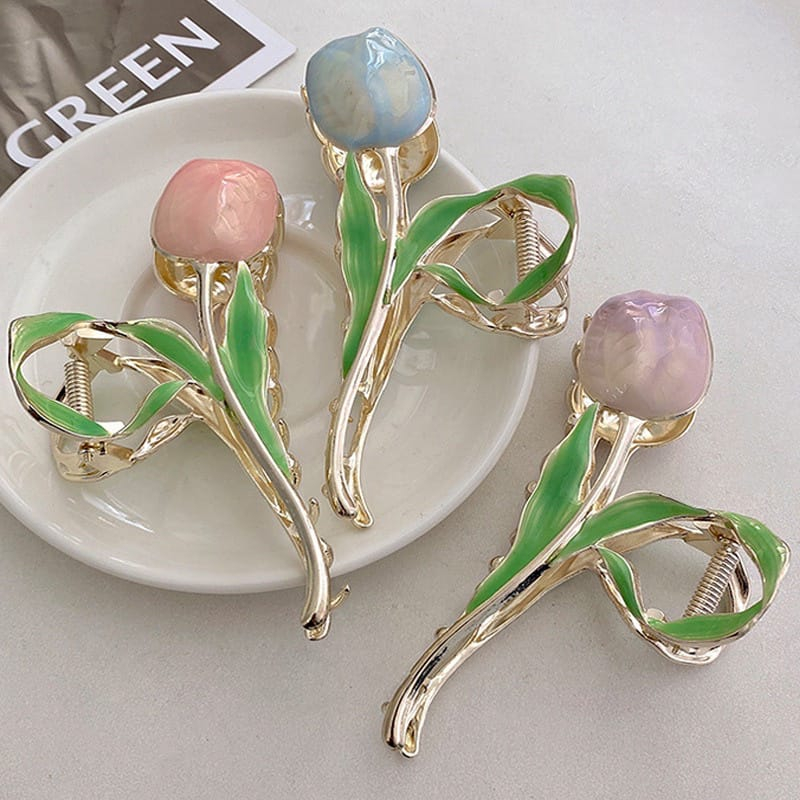 Detail ~ PIYOSHI08 ~ Jepit Rambut Model BUNGA TULIP Rose Hair Claw Aksesoris Ala Korea AF254