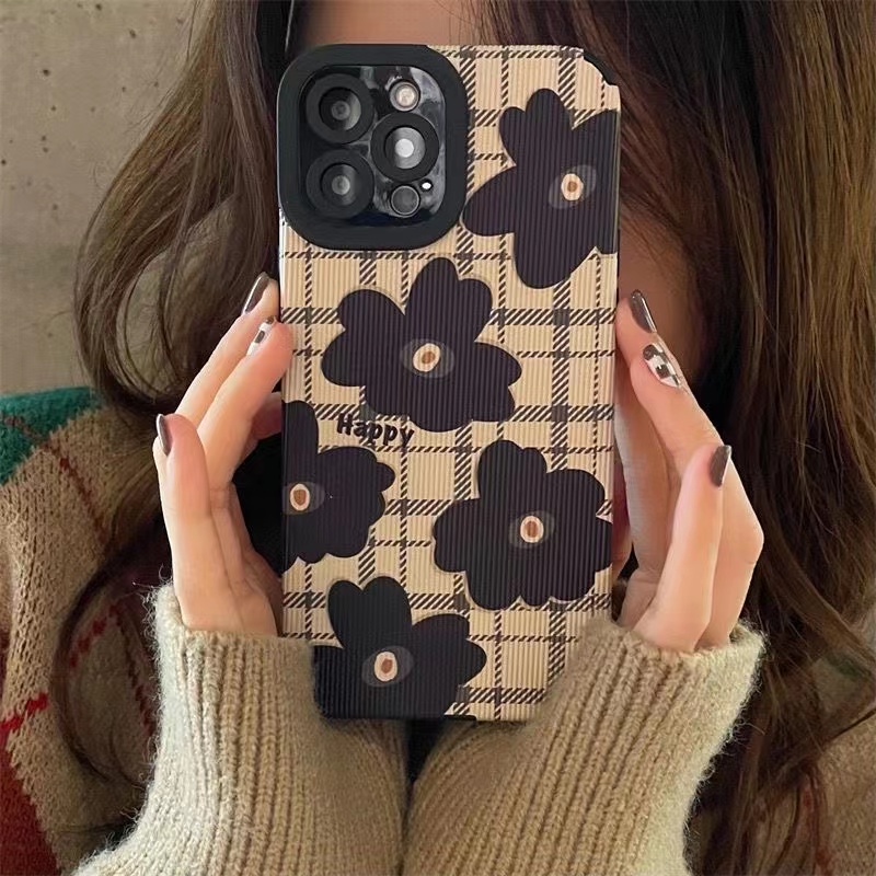 Handphone & Aksesoris > Casing & Skin > Casing & Skin Handphone > Plaid Flowers Soft Case OPPO K5 K3 Realme XT X F9 Pro A31 2020 F11 A83 A91 Reno 3 A95 Streak Casing VIVO S1 Y19 V9 iP iPhone 6 6S 7 8 + Plus X XR SE 2020 XS Max 11 12 13 Pro Max