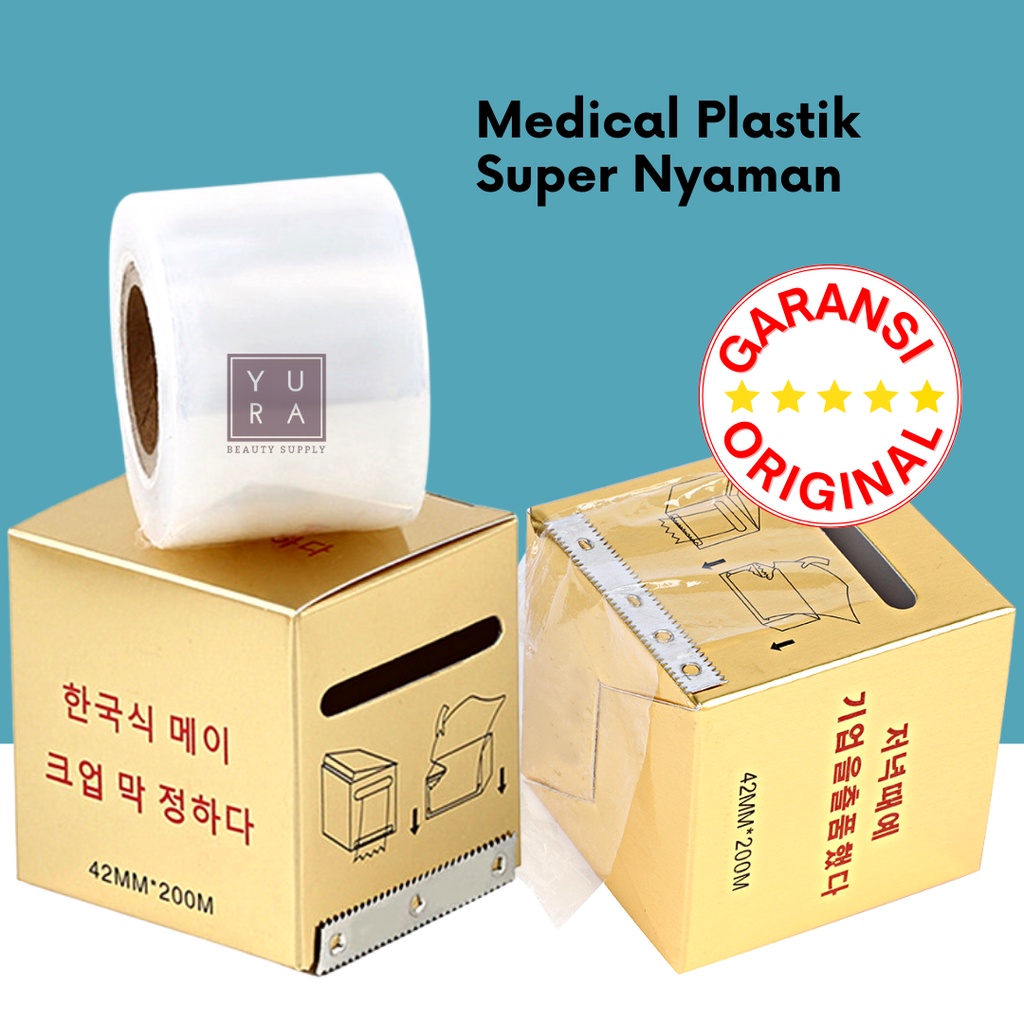 Plastik film (plastik wrap) Kegunaan nya untuk menutupi Alis/Bibir selama proses anastesi agar anastesi lebih meresap dengan maksimal . Ukuran: 42x200mm Bahan Medical Plastik