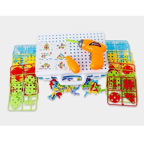 PLASTIC ELECTRIC NUT TOY A . Detail produk: 144pcs Berat 0.85kg Material plastic Untuk anak 3+ years Menggunakan baterai AA 2pcs Ukuran box: 30.5cm x 5.5cm x 24.5cm . PLASTIC ELECTRIC NUT TOY B . Detail produk: 193pcs Berat 1kg Material plastic Untuk anak 3+ years Menggunakan baterai AA 2pcs Ukuran box: 24.5cm x 7.5cm x 24cm