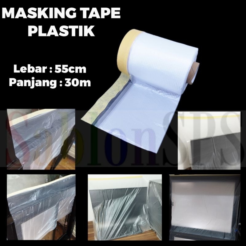 PLASTIK MASKING TAPE 55cm X 30M MASKING PENUTUP FURNITURE CAT MOBIL TEMBOK