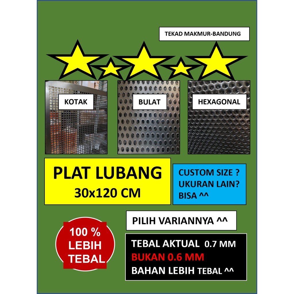 *Bebas bertanya ^^. Ini ukuran 30x120 ya ^^. *Ada 3 macam : Lubang Bulat, Kotak & Hexagonal (Pilih variannya ^^) Ada juga lubang bulat 1+2+3 (beda link) *Ukuran ada macam-macam, check foto (Tanya aja ^^) *Perlu banyak? Kontak kami untuk harga terbaik ^^