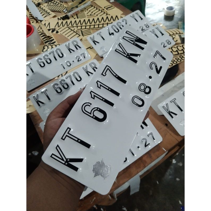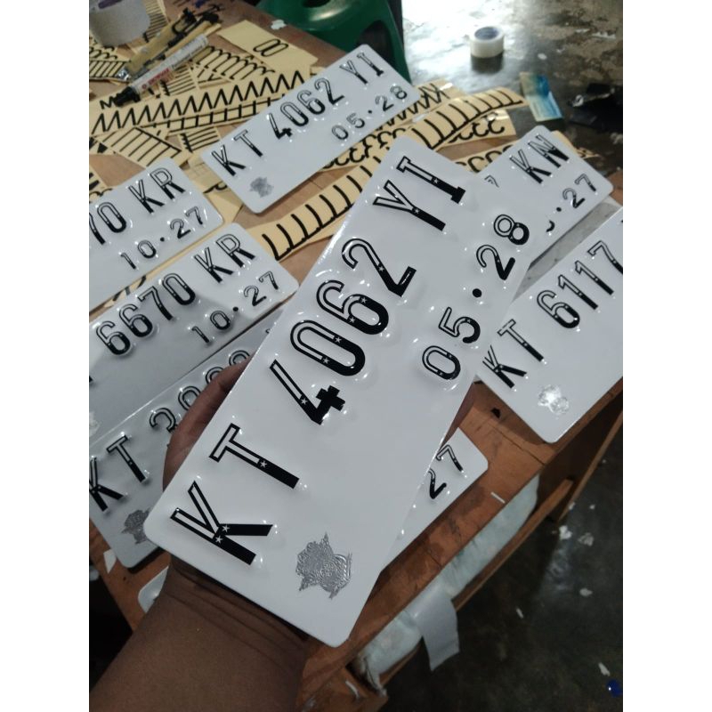 Plat nomor motor putih tulisan hitam font variasi harga untuk satuan (1pcs) depan saja atau belakang saja jika order sepasang klik X2 ukuran dimensi plat 9x23 lebih kecil dari standarnya contoh order Nopol : BG 2364 BM Masa berlaku : 01.27 motor : Beat tahun 2021