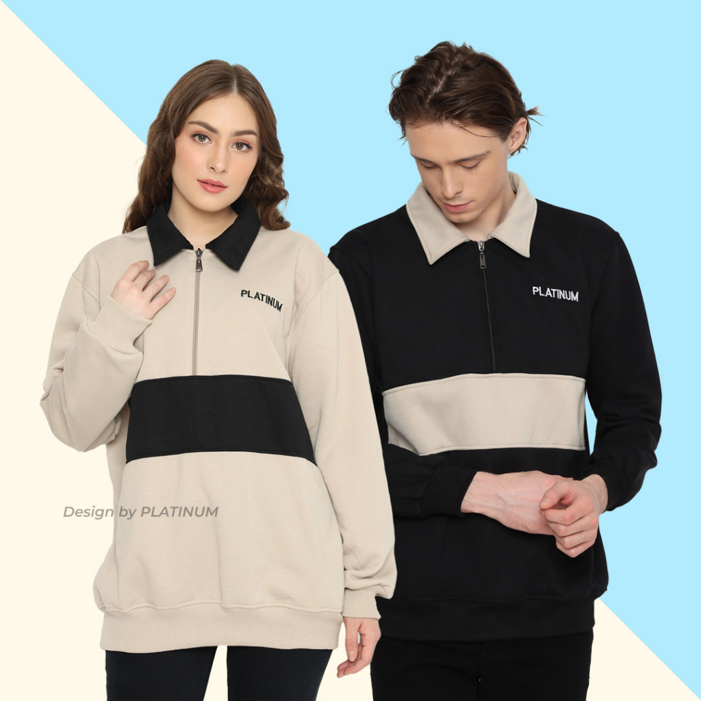 PLATINUM WORLD Sweatshirt Crewneck HALF ZIPP Rugby Polos Couple Pria - Wanita XX4