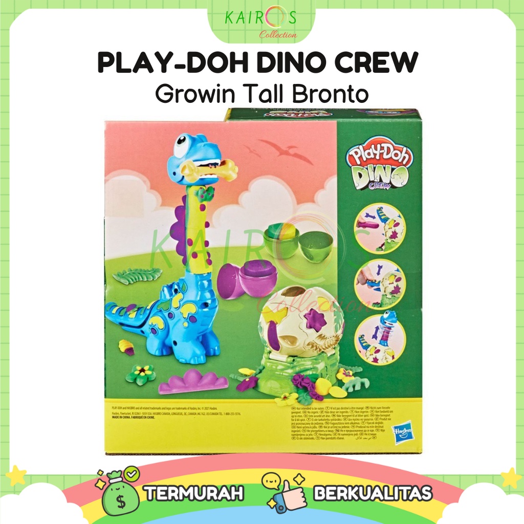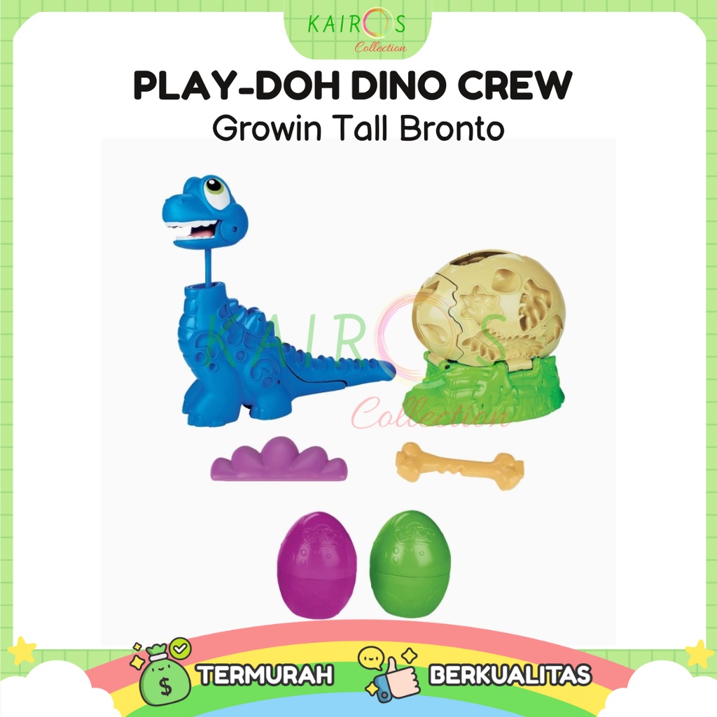 Help the baby bronto break out of its egg! This Play-Doh dinosaur playset lets kids hatch the baby brontosaurus figure and make its neck grow long. Simply fill the dinosaur toy with Play-Doh modeling compound and press the tail to make its neck grow tall, then decorate the Growin' Tall Bronto with Play-Doh dino bones, flowers, leaves, and even a Play-Doh neck tie. 2 eggs filled each filled with 2.5 ounces of non-toxic Play-Doh compound in 3 different colors help inspire creative ideas. This dino toy makes a great arts and crafts activity or gift for kids 3 years and up!