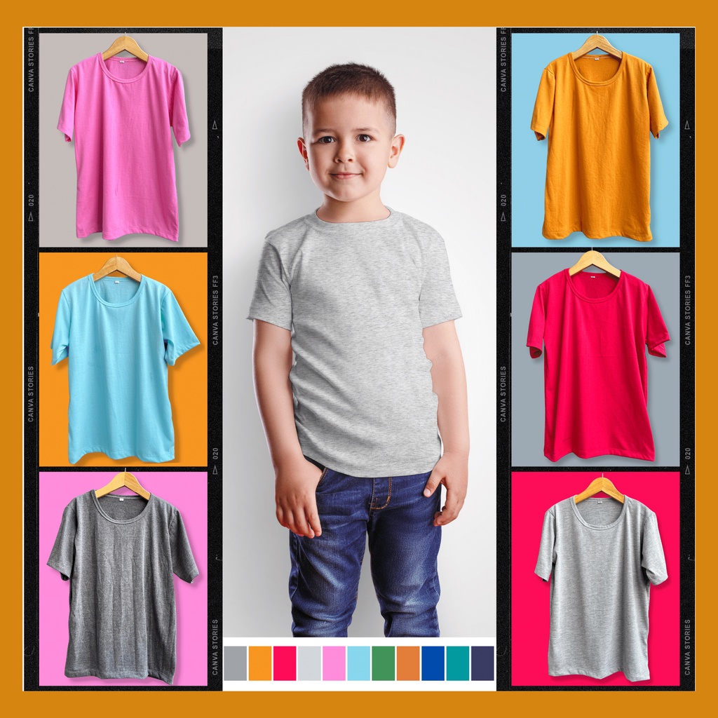 Kaos polos anak-anak untuk usia 6 - 15 tahun.