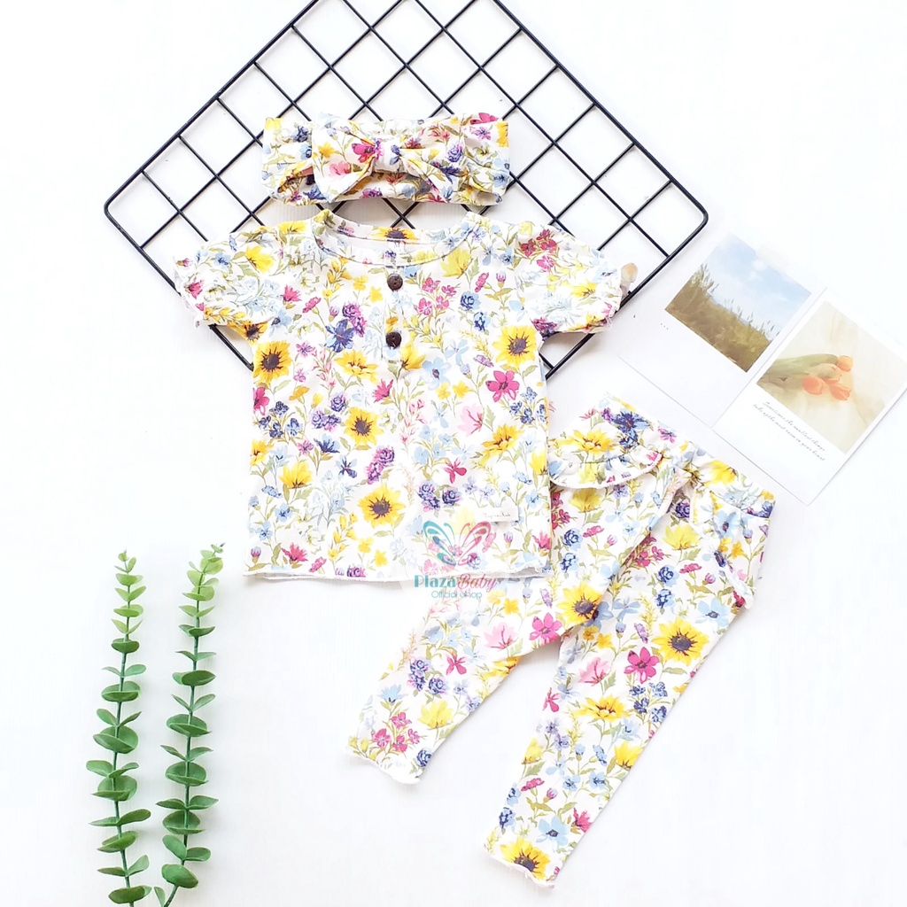 Detail Plazababyku MX MOLLY setelan bayi motif bunga yang lucu free headband