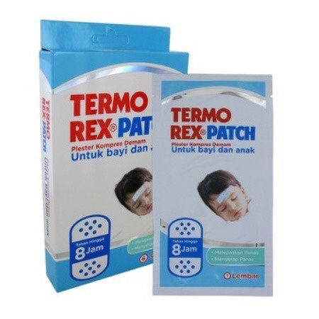 Termorex Patch adalah Plester hidrogel Plester Kompres Demam Untuk Bayi dan Anak, sakit gigi dan nyeri otot. Kegunaan Membantu menurunkan panas dan meringankan demam, membantu meredakan sakit kepala Cara penggunaan Bersihkan dan keringkan daerah yang sakit, lepaskan lapisan transparan dan tempelkan permukaan yang melekat pada daerah yang sakit. Untuk meningkatkan efek pendinginan, sebelum digunakan disimpan dulu dilemari pendingin. Jangan disimpan di freezer. Bisa dipotong dengan gunting sesuai ukuran yang diperlukan, hanya untuk pemakaian luar Informasi tambahan Rasa dingin tahan 8 jam. Daya lekat kuat. Lembut dikulit. Sediaan ini bukan obat. Aman digunakan bersama dengan obat. Kemasan 1 dus berisi 6 sachet 1 sachet isi 1 lembar