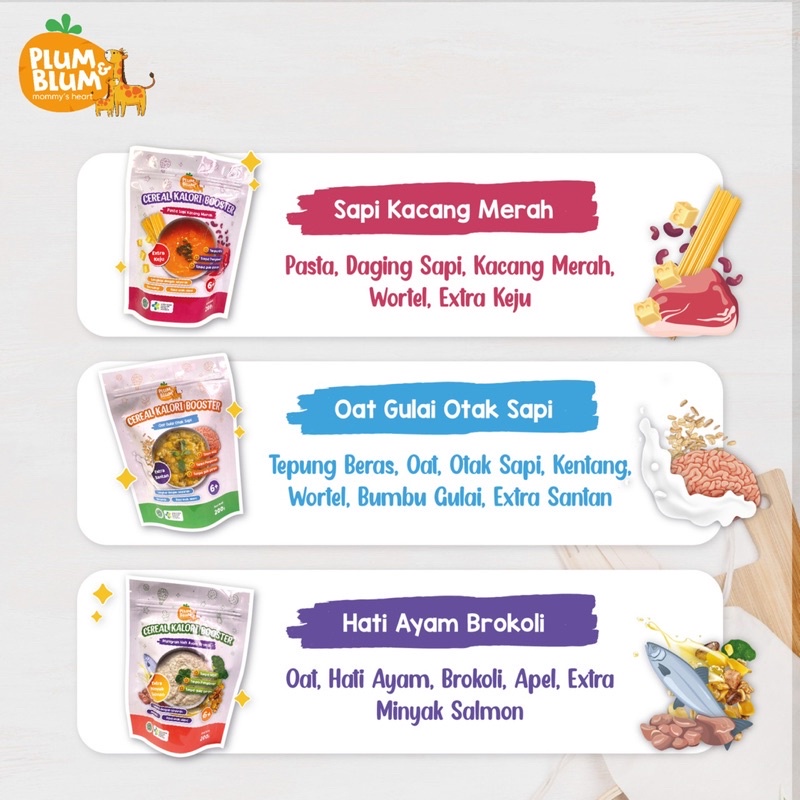 Detail Plum & Blum Cereal bubur bayi Oat Pasta Beef BUAH /Sereal Bb Booster -200gr Cereal Kalori Booster BB Booster Penambah Berat badan Cereal Bayi Penambah Nafsu Makan