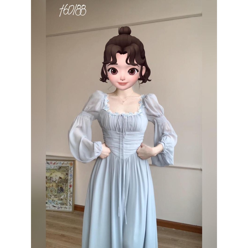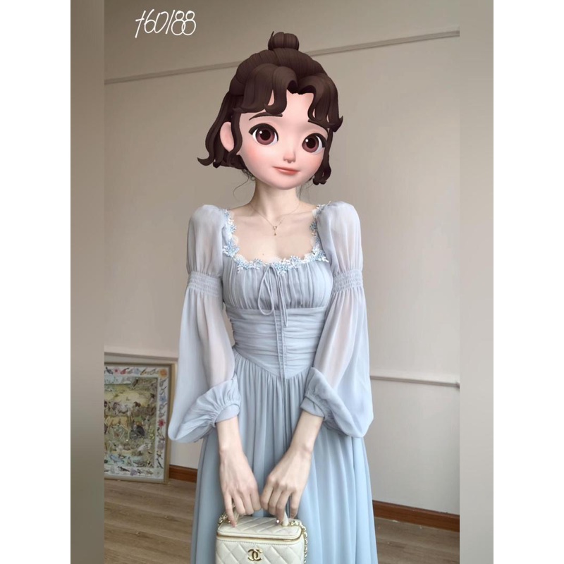 Detail Plus Ukuran GemukmmGaun Peri Kerah Kotak Perancis Gaun Panjang Putri Pangkas Pinggang Manis Cinta Pe