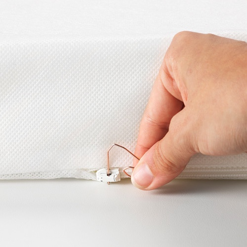 Seprai berkaret LEN tersedia dalam 2 ukuran: Satu cocok untuk kasur untuk tempat tidur diperpanjang tanpa bagian ekstensi (80x130 cm) dan satu cocok kasur untuk tempat tidur diperpanjang dengan 1 bagian ekstensi (80x165 cm).