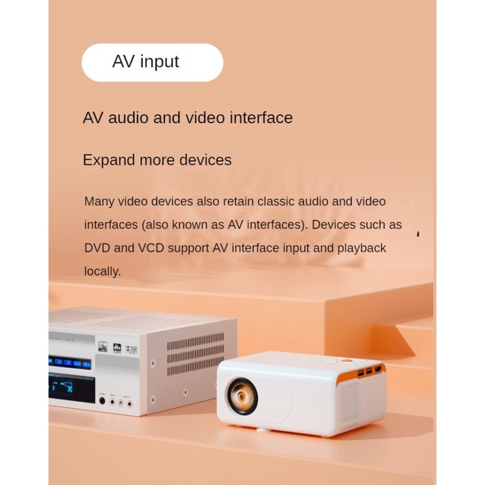 spesifikasi: Optical Resolution: 800x480dpi Power: 38W Projected Dimension: 20-120 inches Light Source: LED Brightness: 2800 Lumens Screen Scale: 4:3/16:9 input/output: 2 x USB port, 1 x port AV , 1 x port headphone Resolusi: 1920 x 1080P Voltage: 110v-240v