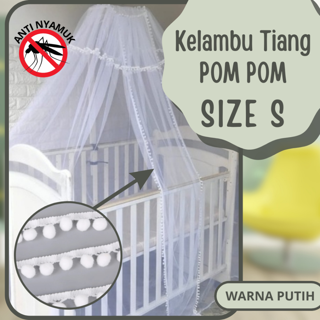 Detail PO Kelambu Tiang POMPOM Ukuran S (small) - Sarung Anti Nyamuk Untuk Box Bayi Buka Tutup Akachan klambu