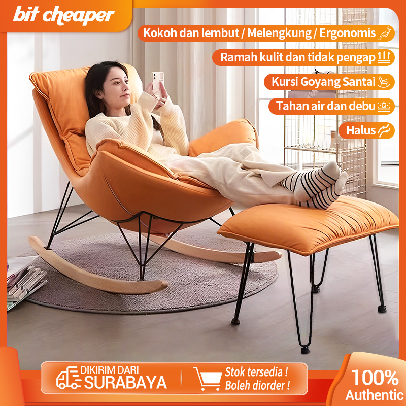 Detail Kursi santai spons yang nyaman/kursi santai istirahat makan siang/kursi goyang ruang tamu taman dengan bantalan kaki