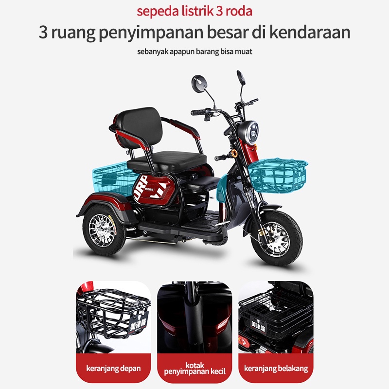 Mobil listrik terbaru Sepeda Roda Tiga Listrik [48V 600W + Baterai 12A CHAOWEI + Pengisi Daya Khusus]