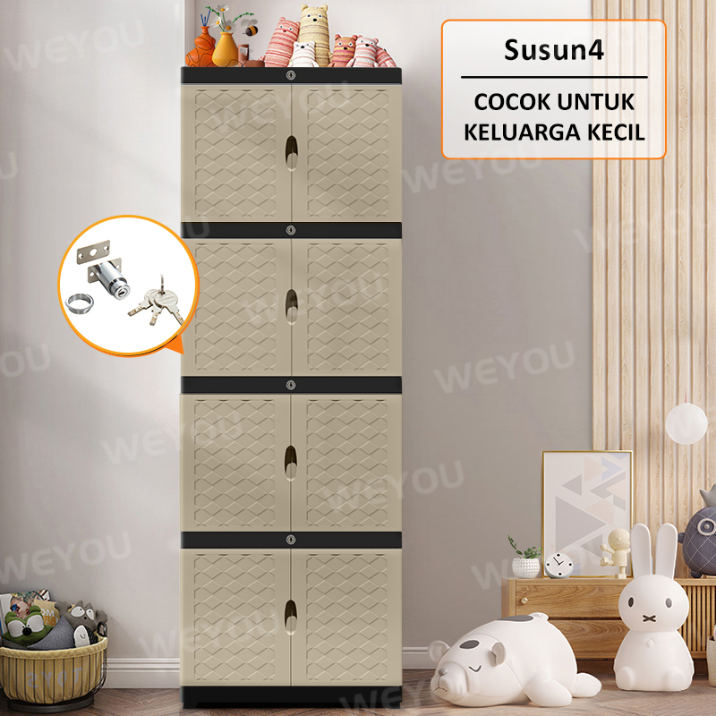 Lemari pakaian plastik dengan desain terbaru yang unik dan elegan aman dan kuat untuk penggunaan jangka panjang. Penyimpanan serbaguna untuk perlengkapan kantor, bahan dapur, dan penyimpanan mainan. Cocok untuk homestay dan penghuni keluarga minimalis. Lemari pakaian ini multifungsi. Dengan lemari pakaian ini, dekorasi rumah Anda menjadi rapi dan menarik, lemari pakaian kokoh anti slip dapat disimpan di mana saja di rumah.