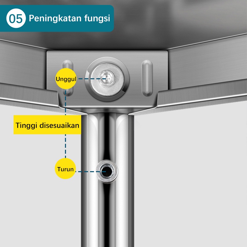 - Rak serbaguna yang dapat menampung microwave, penggorengan, penanak nasi, ceret, dan lainnya. - Bahan stainless steel menebal: tidak berkarat, anti korosi, mudah dibersihkan -Panel tahan air dan penguras minyak: mengadopsi proses anti karat komprehensif asam-basa, yang lebih mudah dibersihkan - Struktur segitiga sambungan bagian dalam: pengaturan yang ditingkatkan, stabil dan bebas getaran