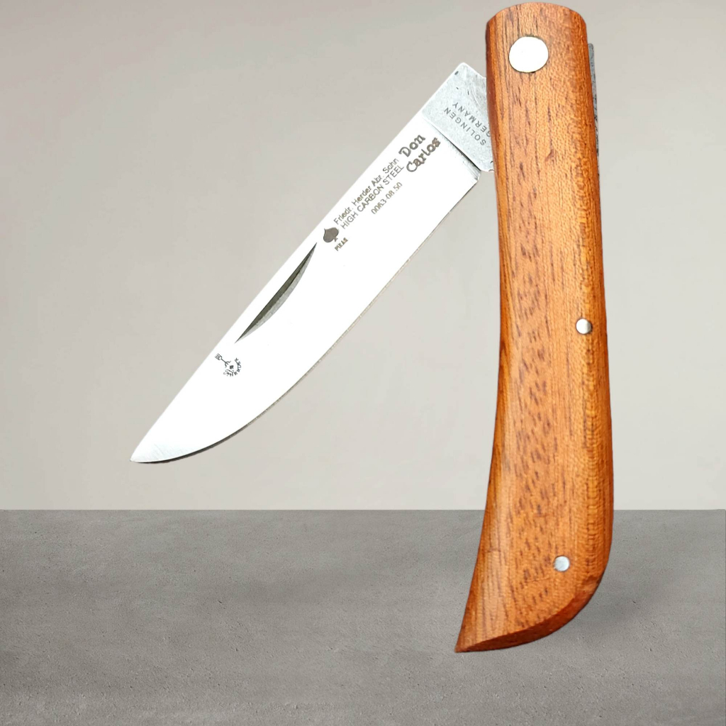 Made in Solingen Germany Brand Fried'r Herder ABR Sohn/cap Garpu Pocket Knives/Pisau Lipat Seri produk 0063 Panjang terbuka: 19 cm Panjang bilah: 8.5 cm Panjang Gagang: 10.5 cm Lebar bilah : 15 mm Tebal bilah: 2.0 mm Bahan bilah : Carbon steel Gagang: Wood Catatan: - Bersihakan dan oleskan minyak setelah digunakan/simpan...! - 100% Original made in Solingen Germany - Gunakan sesuai fungsinya