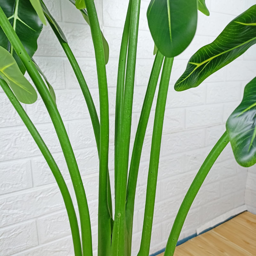 🪴 Tinggi pohon : ± 1,2 meter 🪴 Jumlah daun : 9 helai 🪴 Lebar daun : 20 cm 🪴 Keterangan : 160 daun 🪴 Bahan : PP Plastik 🪴 Berat : 4410 gram