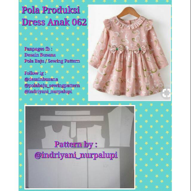 Detail POLA DRESS ANAK 062 - Pola Baju - Pola Instan - Pola Produksi dress anak