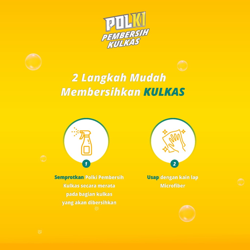 Keunggulan Polki Pembersih Kulkas : - Food Safe Kandungan alkohol organik yang tidak berbahaya untuk makanan yang ada di dalam kulkas - Tidak menimbulkan oksidasi / karatan pada material kulkas Tidak mengandung kimia keras yang dapat merusak material dari kulkas - Aman di tangan Kandungan bahan organik food grade yang aman untuk kulit normal - Praktis, tanpa bilas Hanya semprotkan ke bagian dalam kulkas yang ingin dibersihkan dan di lap dengan kain microfiber saja
