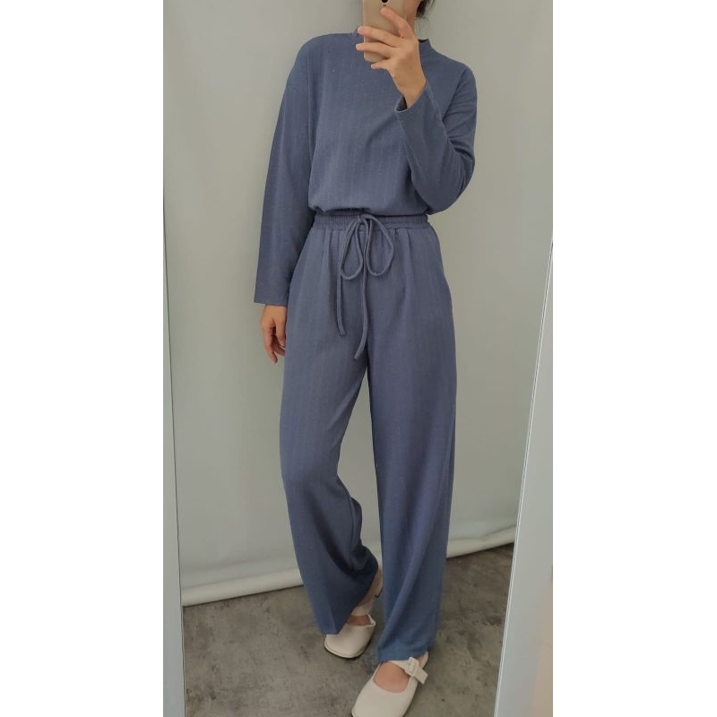 polo set bahan zig-zag knit celana nya keliling pinggang full karet Ld 108 pj 64/ PJ belakang 70cm celana Lingkar pinggang 68-98cm Lingkar paha 64cm panjang celana -+96cm